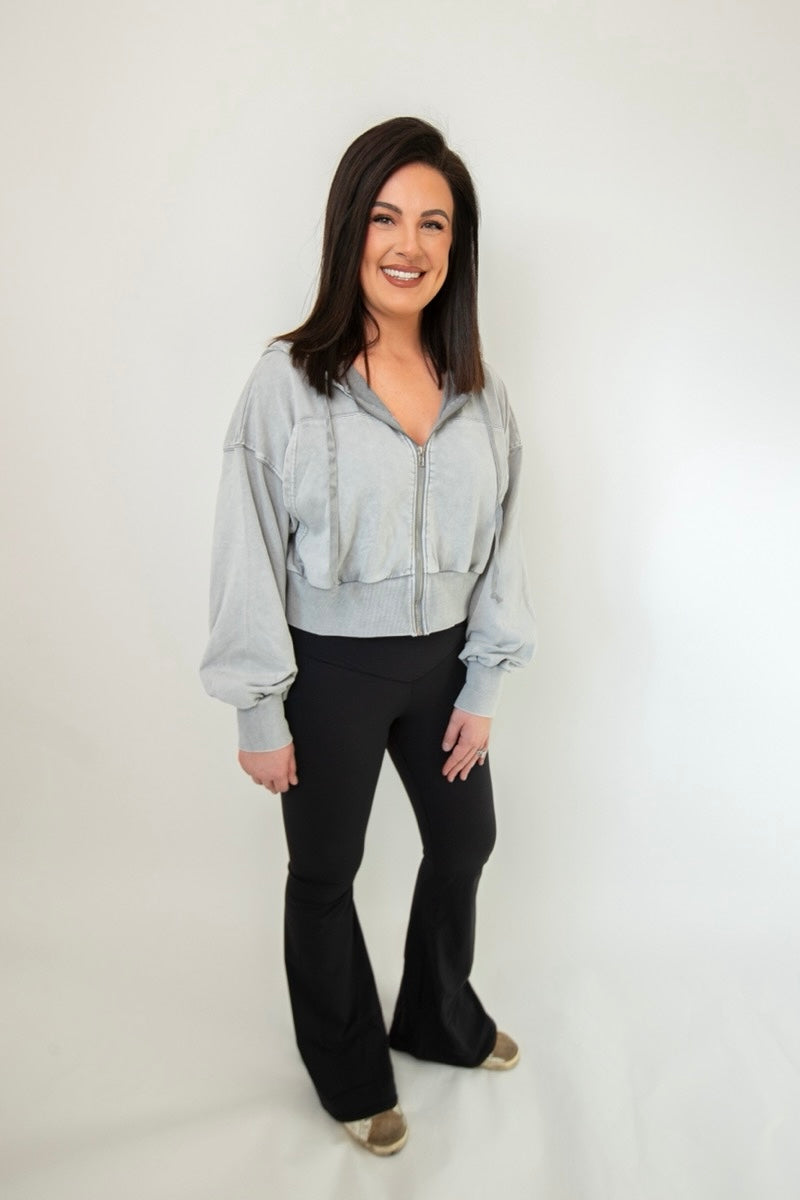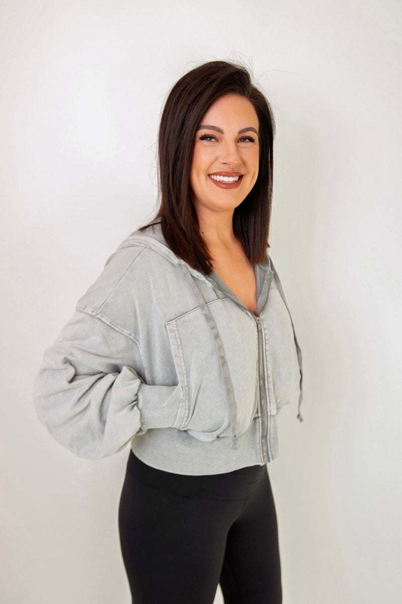 Get ready to elevate your lounging experience. This versatile piece features a relaxed boy silhouette with dropped shoulders and a full zip closure, making it perfect for wearing at home or after your workout. The slight cropped length and adjustable drawstrings add a touch of style and comfort. Be sure to grab one for yourself and experience the ultimate in comfort and style!