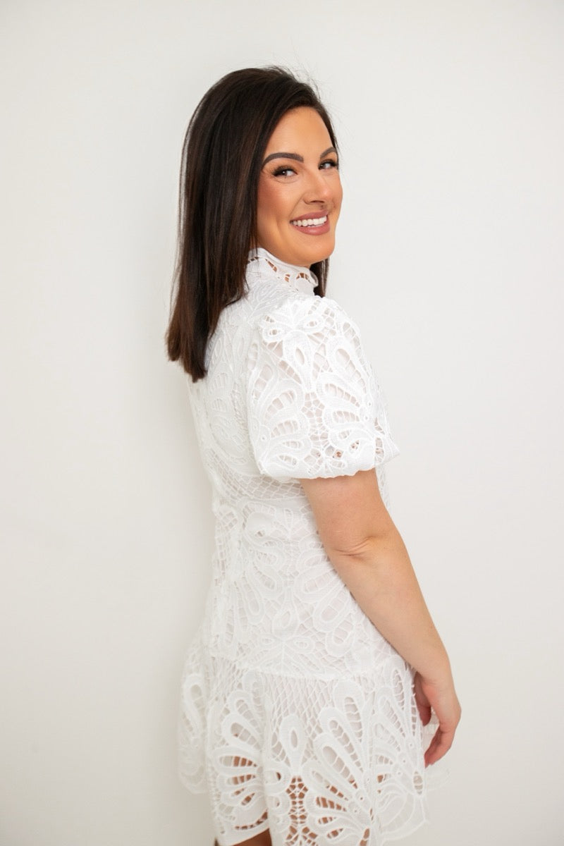 The most beautiful white summer dress with intricate details! This can be worn for any occasion throughout spring and summer. It has a slip underneath, so it is not see through. Trust me when I say this dress is GORGEOUS!