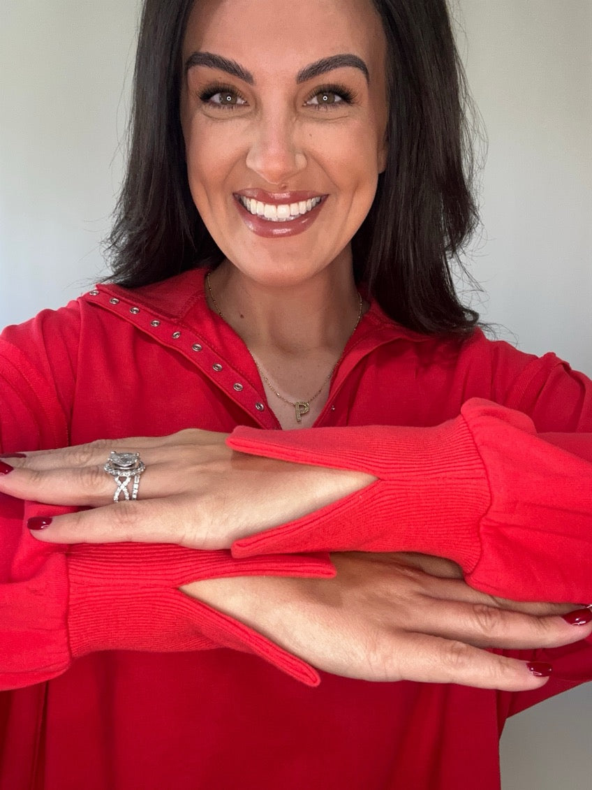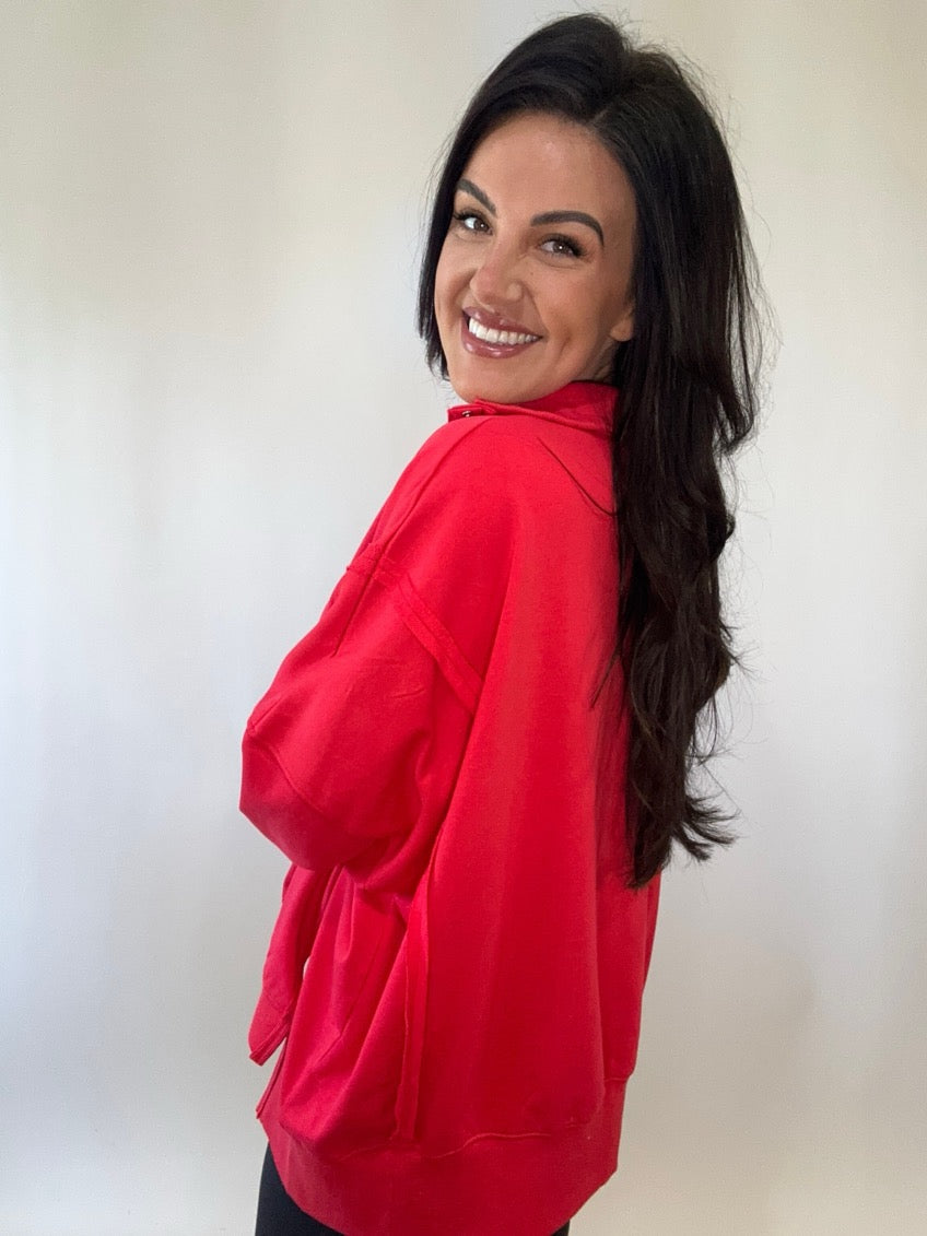 The Emmy is a bold oversized henley pullover that features snap details at the neckline and a relaxed silhouette for an effortless athleisure style. Perfect for layering!