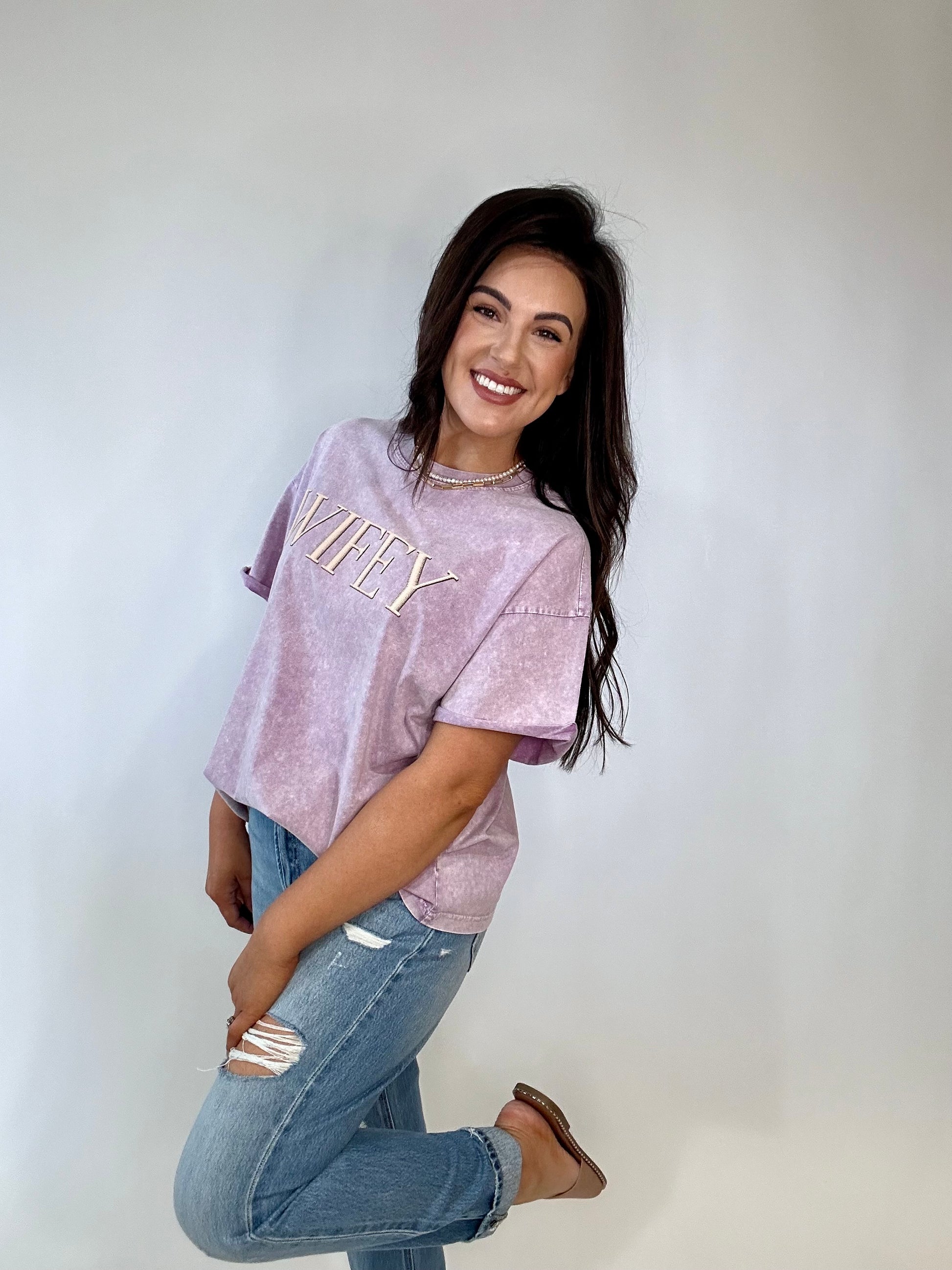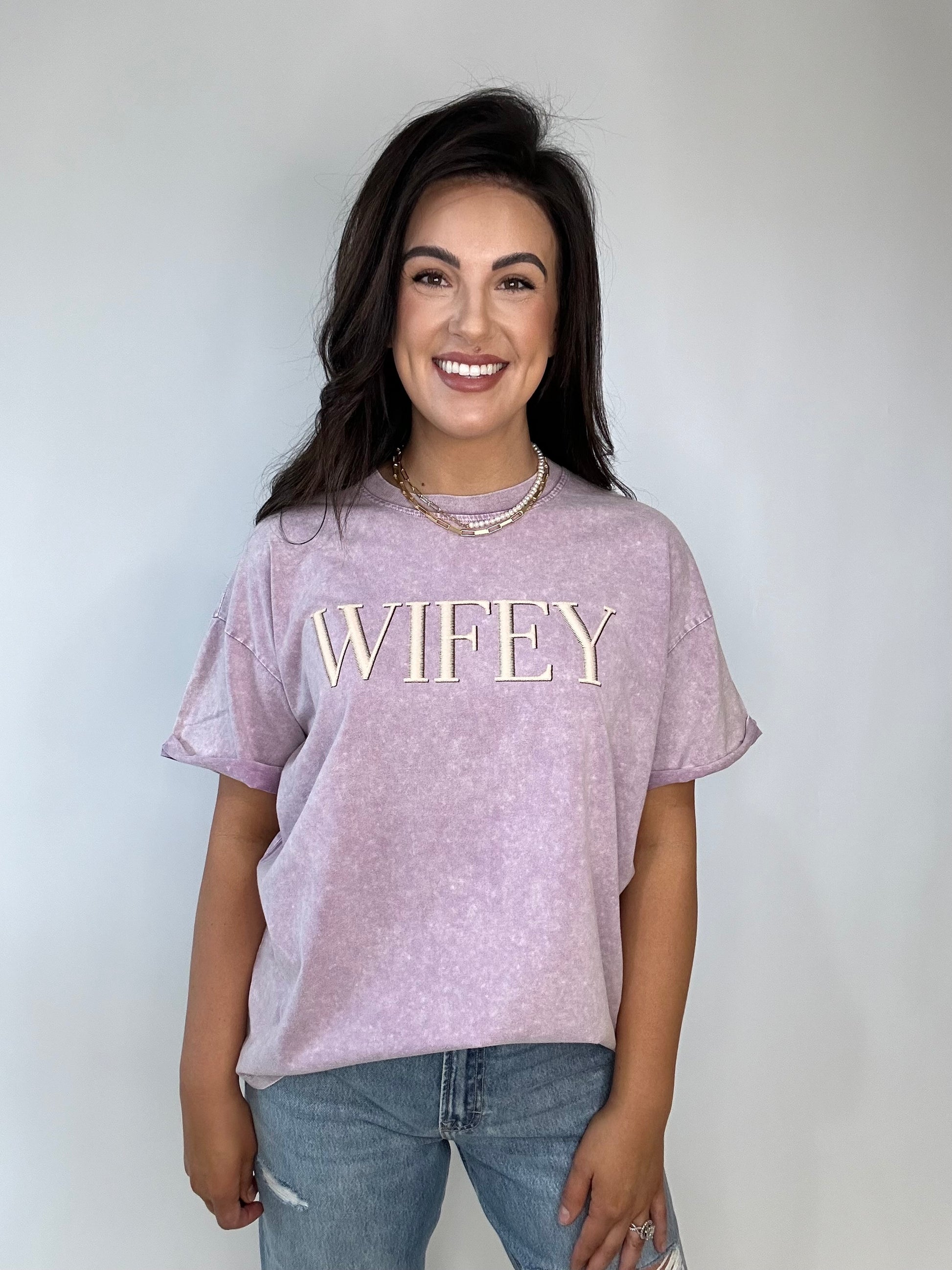 The CUTEST basic graphic tee! Experience the ultimate fashion statement with our Wifey Puff Graphic Tee. Radiate beauty and confidence in our lavender-colored boyfriend fit. This stunning piece will turn heads and make a statement that will leave a lasting impression.